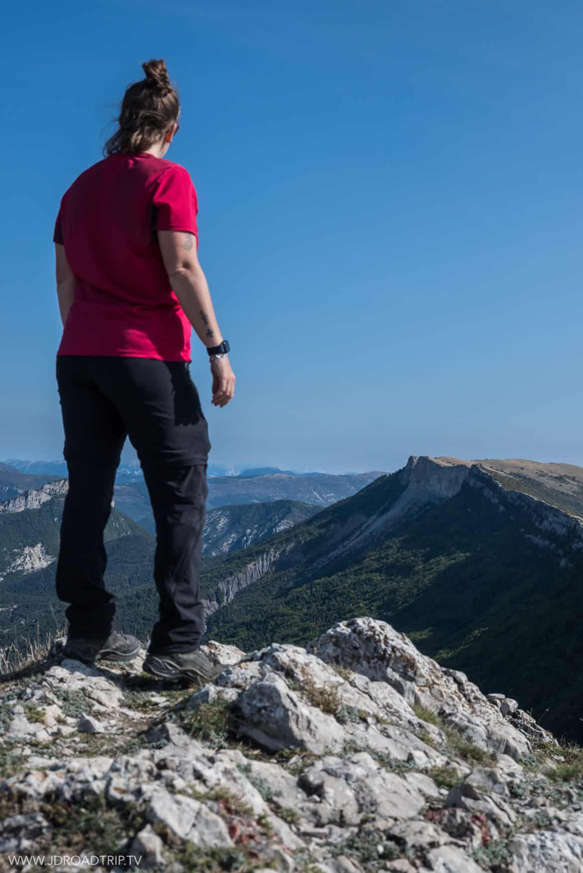Une fois au sommet, je suis seule au monde face à ce panorama en 360° où je peux admirer les Alpages d’Angèle, la Montagne de La Croix, les montagnes de la Lance, les Trois Becs et le Mont Ventoux. Les paysages me font beaucoup penser à ceux que j’ai vu durant ma randonnée itinérante dans les Alpes Du Léman. La crête est essentiellement composée de pâturages, donc soyez vigilant avec les patous. Pour ma part, le troupeau était redescendu donc j’ai pu pleinement profiter des points de vues et me balader sereinement sur la crête. Près de Dieulefit, c’est l’une des randonnées à faire dans la Drôme Provençale en solo, à deux, entre amis ou en famille. Il n’a pas de grosses difficultés à part le dénivelé.