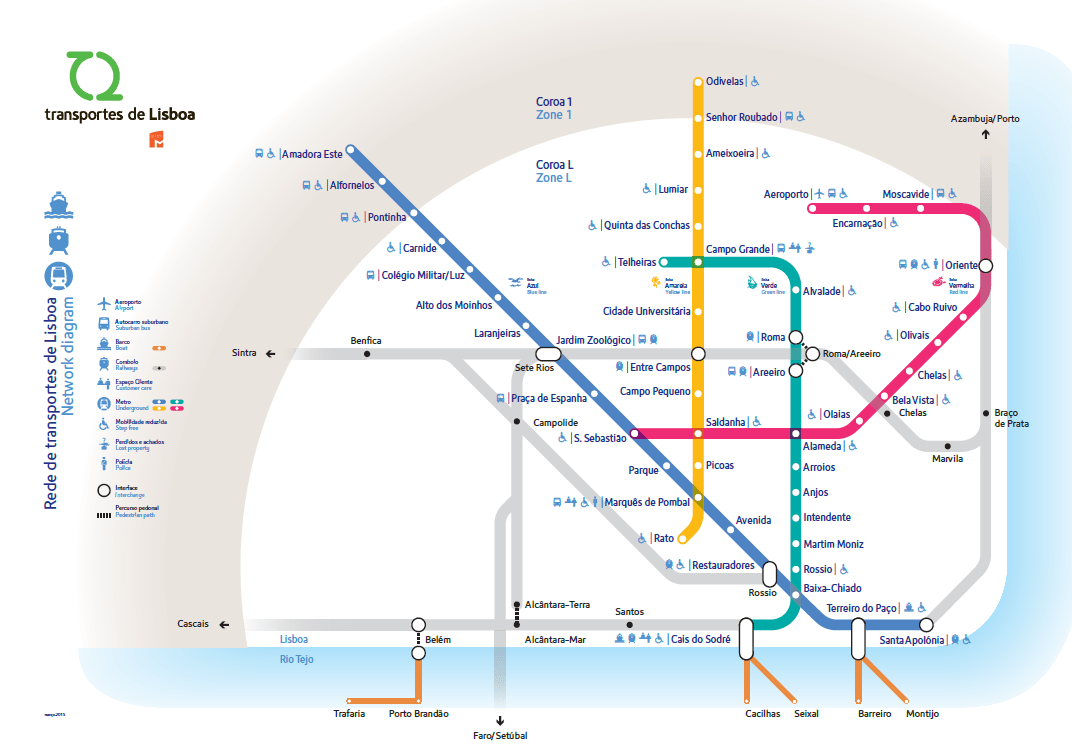 - Metro : À l’aéroport, vous trouverez le métro (station « Aeroporto », ligne rouge/ vermelha en portugais ). C’est le moyen le plus économique, 1,70€ pour un trajet. Si vous logez au cœur de Lisbonne, vous y arriverez en 20 à 30 minutes avec un changement de ligne, il y en a que 4 lignes (bleue, vert, jaune et rouge), impossible de se tromper. En période de pointe, il se peut que le métro soit blindé, avec des bagages, c’est pas forcément l’idéal, à vous de choisir. Pour télécharger le plan du métro : Plan-du-metro-de-Lisbonne.png (3939 téléchargements )