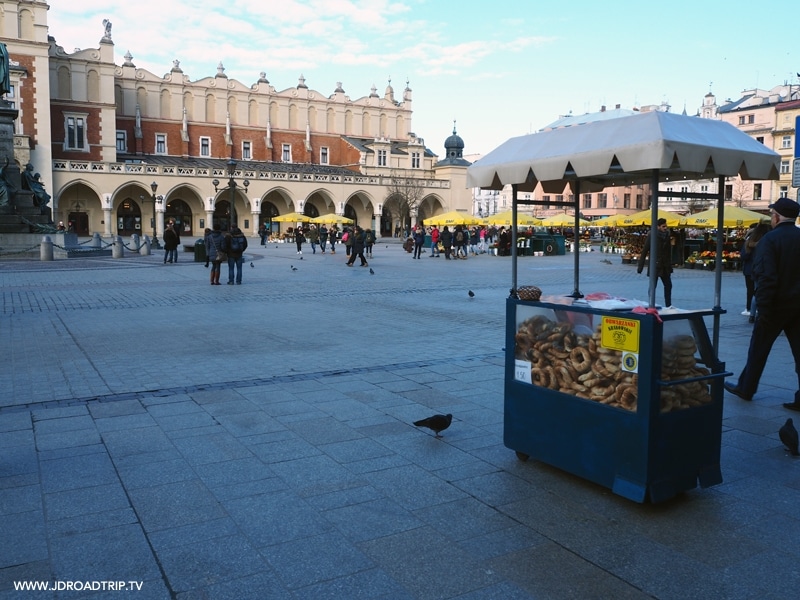 Encore une fois j’avais de la chance, la jolie place du marché (Rynek Główny en polonais) de Cracovie était a 10 minutes à pied de mon hébergement donc idéal quand on vient visiter Cracovie en 3 jours, car j’avais tout à proximité ! Si vous allez visiter Varsovie, la place du marché Rynek est plus petite qu’à Cracovie. Autour de place, vous verrez des roulottes qui vendent des mini pains, c’est une spécialité du pays qui ne vous coûtera rien et vous comblera lors des petits creux. Vous pourrez en acheter une dizaine pour uniquement 5 zlotys (1,20€). La texture en bouche est un mix entre du pain et de la brioche, c’est très bourratif par contre ! C’est une spécialité à ne pas manquer.